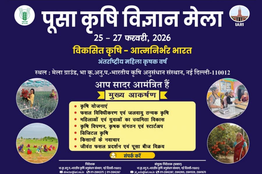 भारतीय कृषि अनुसंधान संस्थान (IARI) पूसा, नई दिल्ली में 25-27 फरवरी, 2026 तक कृषि मेले का आयोजन किया जायेगा, जहां देश भर के हजारों किसान पहुंचते हैं.