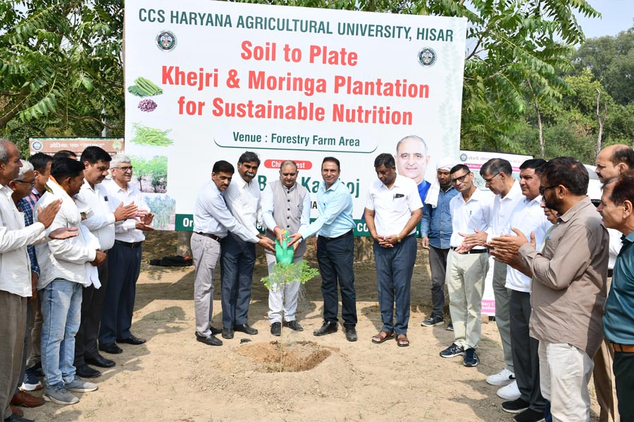Khejri and Moringa : चौधरी चरण सिंह हरियाणा कृषि विश्वविद्यालय में वानिकी विभाग द्वारा ‘मिट्टी से थाली तक’-खेजड़ी एवं सहजन (मोरिंगा) (Khejri and Moringa) का पौधारोपण कार्यक्रम आयोजित किया गया. वानिकी विभाग द्वारा सतत पोषण के लिए आयोजित इस कार्यक्रम में विश्वविद्यालय के कुलपति प्रो. बीआर कांबोज ने खेजड़ी और मोरिंगा की विभिन्न प्रजातियों के पौधे लगाए जो रिसर्च व प्रसारण के लिए प्रयोग किए जाएंगे.